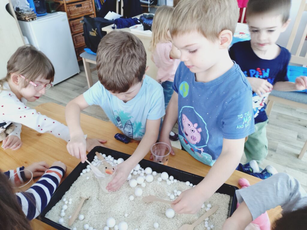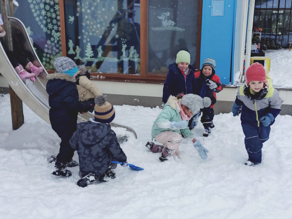 A téli napok során játékosan ismerkedtünk a hó halmazállapot-változásával is. Megfigyeltük, hogy a melegben a hóból víz lesz, azt a hidegre kitéve megfagy, majd a csoportszobában elolvad, és vízzé válik, közben beszélgettünk a fagyásról és az olvadásról. Így a tél nemcsak élmény, hanem tanulás is, tele örömmel, játékkal és felfedezéssel.