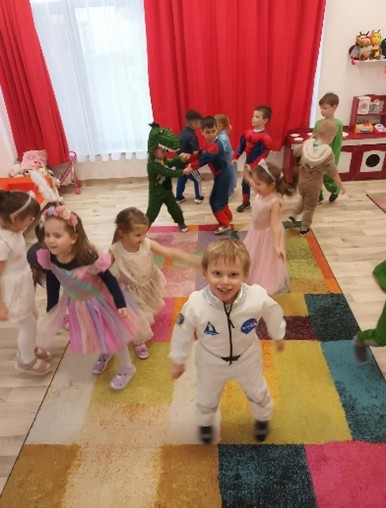 Farsang napján gyermekek már beöltözve érkeznek az óvodába. A fantázia határtalan: mesehősök, állatok, sőt, néhány gyermek meglepetést okozó ötlettel is előrukkolt.