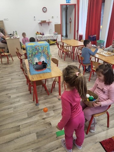 Az óvodában a tornaterem ezen a napon igazi állatos játszótérré változott, ahol a gyerekek különböző játékos feladatokon keresztül ismerkedhettek meg az állatok világával.