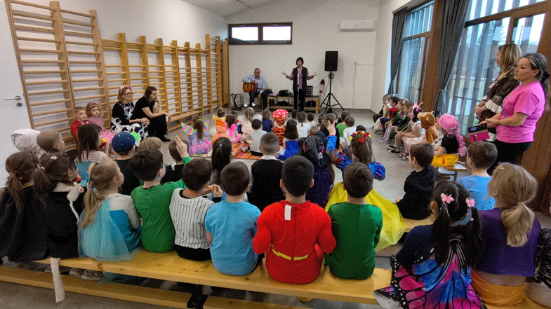 A nap egyik fénypontja a Gézengúz előadás volt, melyen a gyermekek lelkesen figyelték a színes, interaktív műsort, mely tele volt énekkel, zenével, tánccal. Az előadás nemcsak szórakoztató volt, egyben sokat segített a kicsiknek a közös élmények megélésében. A farsang igazi közösségi élmény, tele tánccal, nevetéssel, mókával, ahol a mozgás és az együtt töltött idő állt a középpontban.