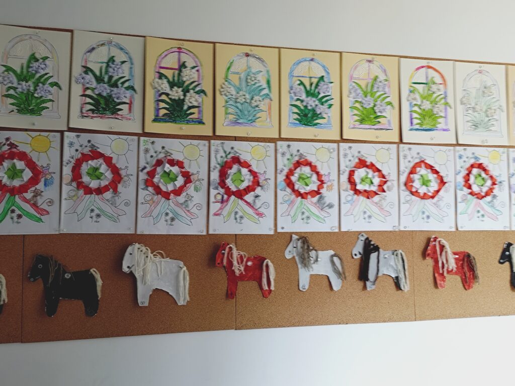 A hét folyamán a gyerekek verseket és dalokat tanultak, amelyek segítségével közelebb kerülhettek az ünnep hangulatához. Mesékkel és történetekkel közelebb hoztuk hozzájuk a múlt eseményeit, beszélgettünk a bátorságról, az összetartozásról, és arról, miért fontos a megemlékezés. Kreatív kézműves foglalkozásokkal is színesítettük a hét programját. A gyermekek nagy örömmel készítettek huszárokat, lovacskákat és kokárdákat, miközben a piros, fehér és zöld színek játékosan ismerőssé váltak számukra.