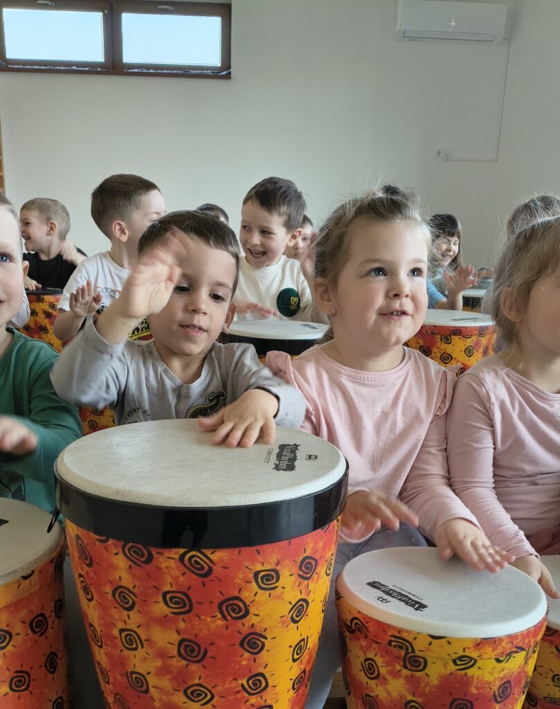 Sárkány Vilmos apukája, sok-sok ütőshangszerrel, dobokkal jött hozzánk és egy fergeteges örömzenélésben vehettek részt a gyerekeink.