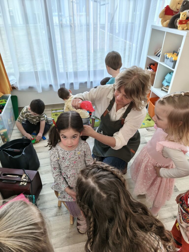 A Micimackó csoportban, Drávavölgyi Rozina fodrász nagymamája mesélt munkájáról, majd pompás frizurákat készített a lányoknak.