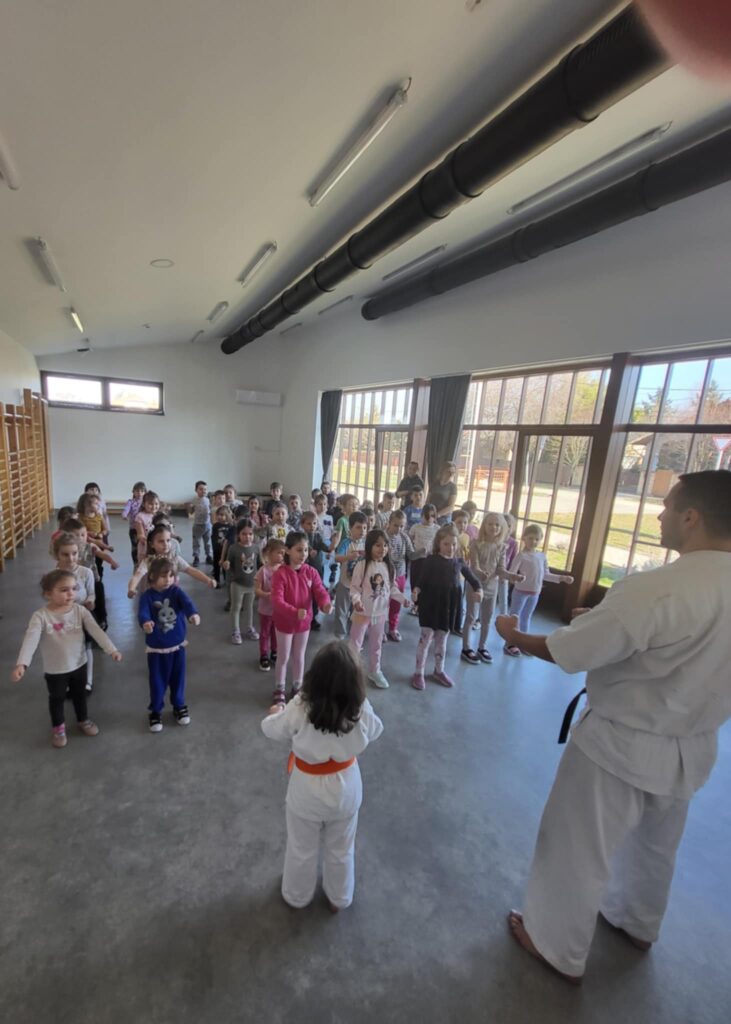 Patyi Boglárka apukájával, karateedzésen vehettek részt ovisaink. Megtanulhatták, hogy a karate technikáit csak védekezésként használhatják az emberek, és megismerhették, hogy milyen erősnek és kitartónak kell lenni az edzésen ahhoz, hogy az aranyéremig eljusson valaki.